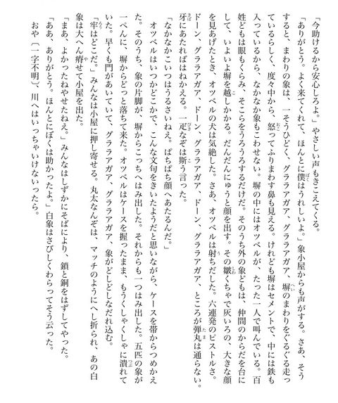 「ああ、ありがとう。ほんとにぼくは助かったよ。」白象はさびしくわらってそう云った。