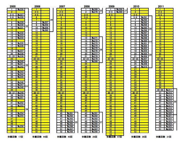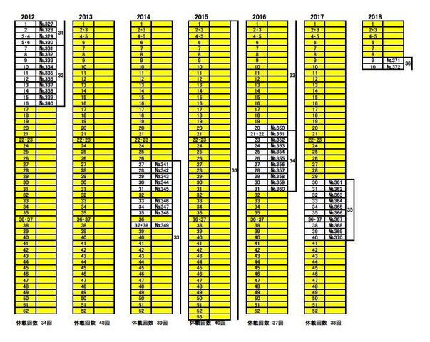 よく見たら黄色の部分が休載期間やんけ!2015年皆勤かと思ったら逆やったわ