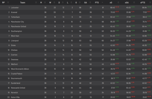 これだけ乖離することは極めてまれで、GKの能力やFW陣の決定力の高さを差し引いてもかなりの幸運に恵まれていると言える